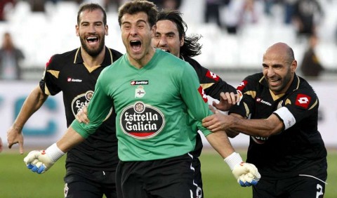 Dijo el héroe del Deportivo La Coruña. La cosa es que corrían 95 minutos de juego -o sea cinco adicionados al reglamentario- y los gallegos caían ante el Almería por 1 a 0. Saque de esquina convalidado por el colegiado. ¿Vamos todos? Vamos todos pensó este guardameta nacido en Logroño el 18 de septiembre de 1979 y que fue parte de la absoluta selección española en 2004. Fue. Conectó el balón de cabeza. Gol. ¡Gooool del Depor! El primer portero en anotar de esa manera un gol en la Liga es del SuperDepor. Aquí la imagen: