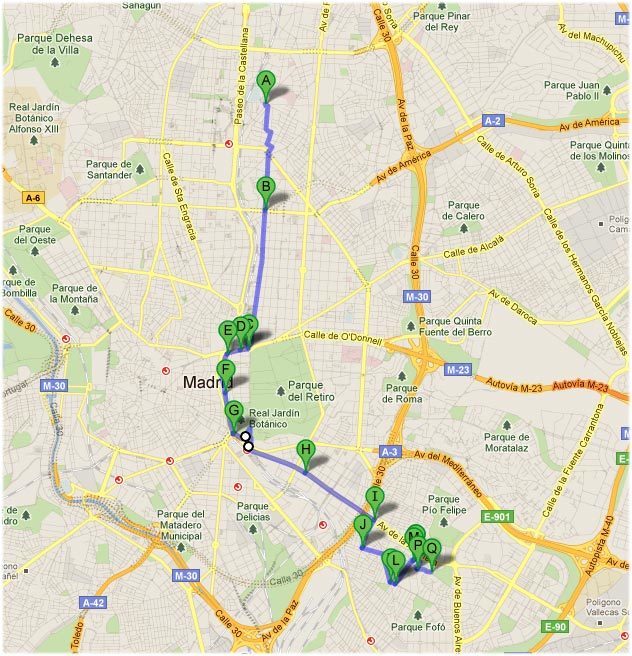 La carrera comienza en Concha Espina (centro financiero de la ciudad) y pasa por los lugares turísticos de Madrid, como son la Puerta de Alcalá, Cibeles y el Paseo del Arte, entre otros. La meta para profesionales es el estadio del Rayo Vallecano, el Teresa Rivero, en el barrio de Vallecas, y para los populares en los alrededores al campo.